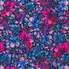 Distinctive dry brush florals overprint and bloom with stunning color and detail in a 24” panel and gorgeous coordinates. Vibrant hues of pink, lavender, and navy mix for a collection that will create unforgettable quilts, home décor, apparel, and accessories. Perfect for all your Springtime projects! ©QT Fabrics