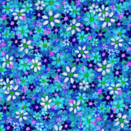 Flower To The Sun Packed Flowers Blue P & B Textiles