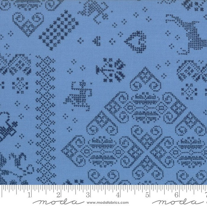 Nordic Stitches - Snow - Reindeer - Blue - Moda - Christmas - 39710 18