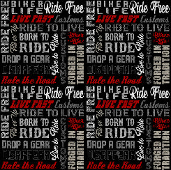 Share your bike pride! Detailed motorcycle designs in classic colors are the leader of the pack followed by words to ride by biker lingo. Create awesome cozy quilts, bandanas, totes, apparel, and more for yourself or your favorite biker! JQ Licensing