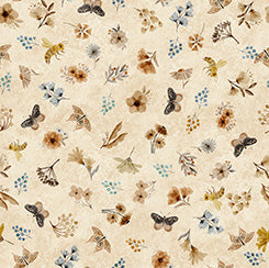 Bear Hugs -Tan Flowers & Insects Toss- 30065 A- Qt Fabrics