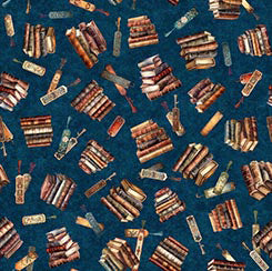 Bookworm - 30449W - Blue Stacked Book Toss- Qt Fabrics