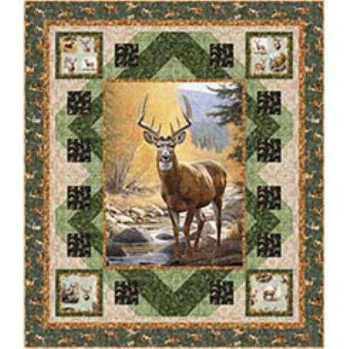 Embrace the wilderness with the Buck Wild Quilt Kit by QT Fabrics, designed for nature enthusiasts and quilting aficionados. This kit features high-quality materials that promise durability and a luxurious feel. The centerpiece showcases a majestic deer in a serene forest setting, surrounded by intricate patterns in earthy greens and browns, bringing a cozy, rustic charm to any room. Perfect for crafting a quilt that captures the essence of the great outdoors, this kit is ideal for creating a statement piece that adds warmth and character to your home. Whether you're an experienced quilter or a passionate beginner, the Buck Wild Quilt Kit offers an engaging project that results in a beautiful, nature-inspired masterpiece.