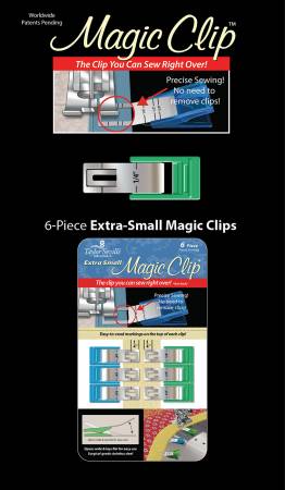 Elevate your sewing projects with the Magic Clip Extra Small 6-Piece Set in vibrant blue and green. Designed for precision and efficiency, these clips allow you to sew right over them, eliminating the need to stop and remove them. Perfect for quilting and intricate sewing tasks, they save you time and effort, ensuring your fabric stays securely in place. Crafted by Taylor Seville Original, these clips are a must-have for any sewing enthusiast looking to enhance their crafting experience. With their eye-catching colors and practical design, they not only add a pop of color to your toolkit but also streamline your sewing process. Make precision sewing a breeze with Magic Clip!