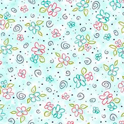 Daisy Doodle - Aqua Spaced Stylized Floral- 30745-Q- Qt Fabrics