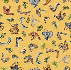 Dinoroars! - 0 30812S Gold- Dino Heads & Ferns- Qt Fabrics