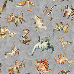 Dinoroars! - 30810K - Grey - Dinosaurs Toss- Qt Fabrics