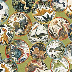 Dinoroars! - 30811H - Olive - Dinosaurs Medallions- Qt Fabrics