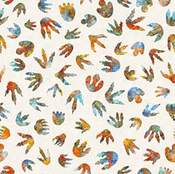 Unleash your creativity with the Dinoroars! Beige Dino Tracks fabric by QT Fabrics, a must-have for quilting enthusiasts and DIY crafters. This fabric features vibrant, multicolored dinosaur footprints that dance across a soft beige background, adding a playful and whimsical touch to any project. Whether you're crafting a cozy quilt for a child's room or creating unique home decor pieces, this fabric ignites imagination with every stitch. Made from high-quality materials, it ensures durability and ease of handling. Bring a prehistoric charm to your sewing projects and let your creativity roar with Dinoroars! Ideal for those who love to blend fun with functionality in their crafting endeavors.
