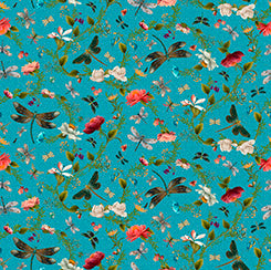 Immerse yourself in the enchanting world of the Dragonfly Garden fabric by Quilting Treasures. This exquisite fabric features a vibrant tapestry of blue dragonflies and delicate floral patterns set against a rich turquoise backdrop. Perfect for quilting enthusiasts and creative crafters, this fabric brings a touch of nature's elegance to your projects. Whether you're designing a quilt, crafting unique home décor, or creating personalized gifts, the Dragonfly Garden fabric offers a splash of color and whimsy that captivates the eye. Its high-quality material ensures durability and ease of use, making it an ideal choice for both beginners and seasoned creators. Transform your crafting visions into reality with this stunning fabric.