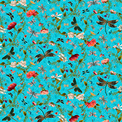 Transform your quilting projects with the enchanting Dragonfly Garden fabric by Quilting Treasures. This exquisite fabric features a vibrant blue backdrop adorned with whimsical dragonflies and delicate florals, perfect for adding a touch of magic to your creations. Ideal for creative sewing enthusiasts, this fabric is crafted to inspire and elevate your quilting experience. The intricate design and lively colors make it a standout choice for quilts, home décor, or any artistic endeavor. Dive into a world of creativity and let your imagination soar with this stunning fabric. Whether you're crafting a cozy quilt or an eye-catching cushion, the Dragonfly Garden fabric ensures your projects are as unique as they are beautiful.