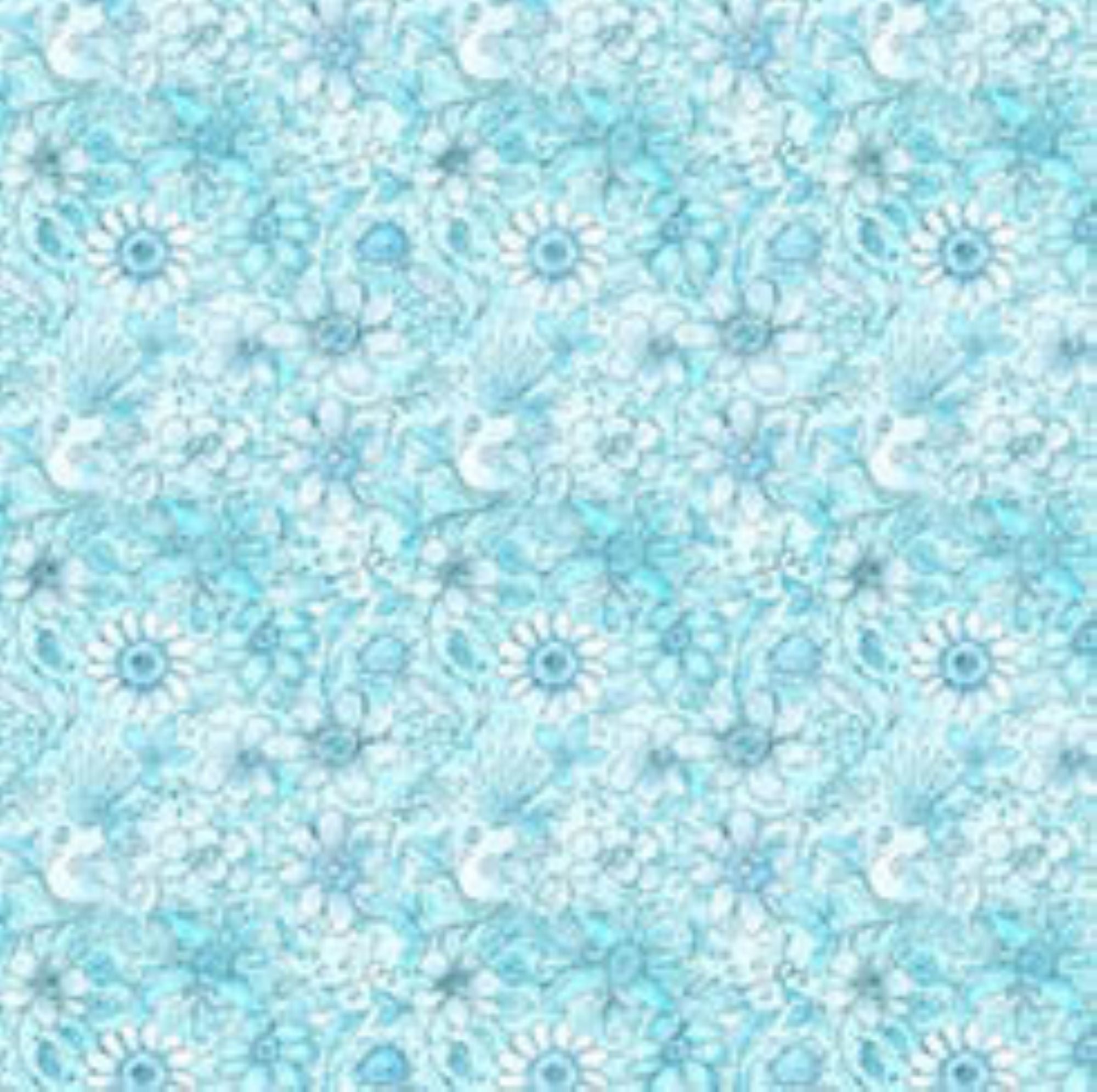 Enchanted - 30763 Q - Aqua -Flower Tonal - Qt Fabrics