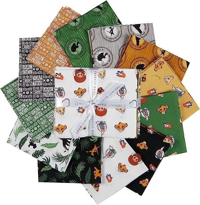 Unleash your creativity with our Lion King Disney Fat Quarters - 9 Count set, perfect for quilting enthusiasts and Disney fans alike. Each piece in this vibrant collection features beloved characters and iconic scenes from the classic movie, bringing a touch of magic to your sewing projects. Crafted from high-quality cotton, these fat quarters are soft, durable, and easy to work with, ensuring your creations stand the test of time. The rich palette of greens, oranges, and yellows captures the spirit of the savannah, making it ideal for crafting quilts, pillow covers, or even unique apparel. Let your imagination roar with endless possibilities as you stitch your way to a masterpiece!