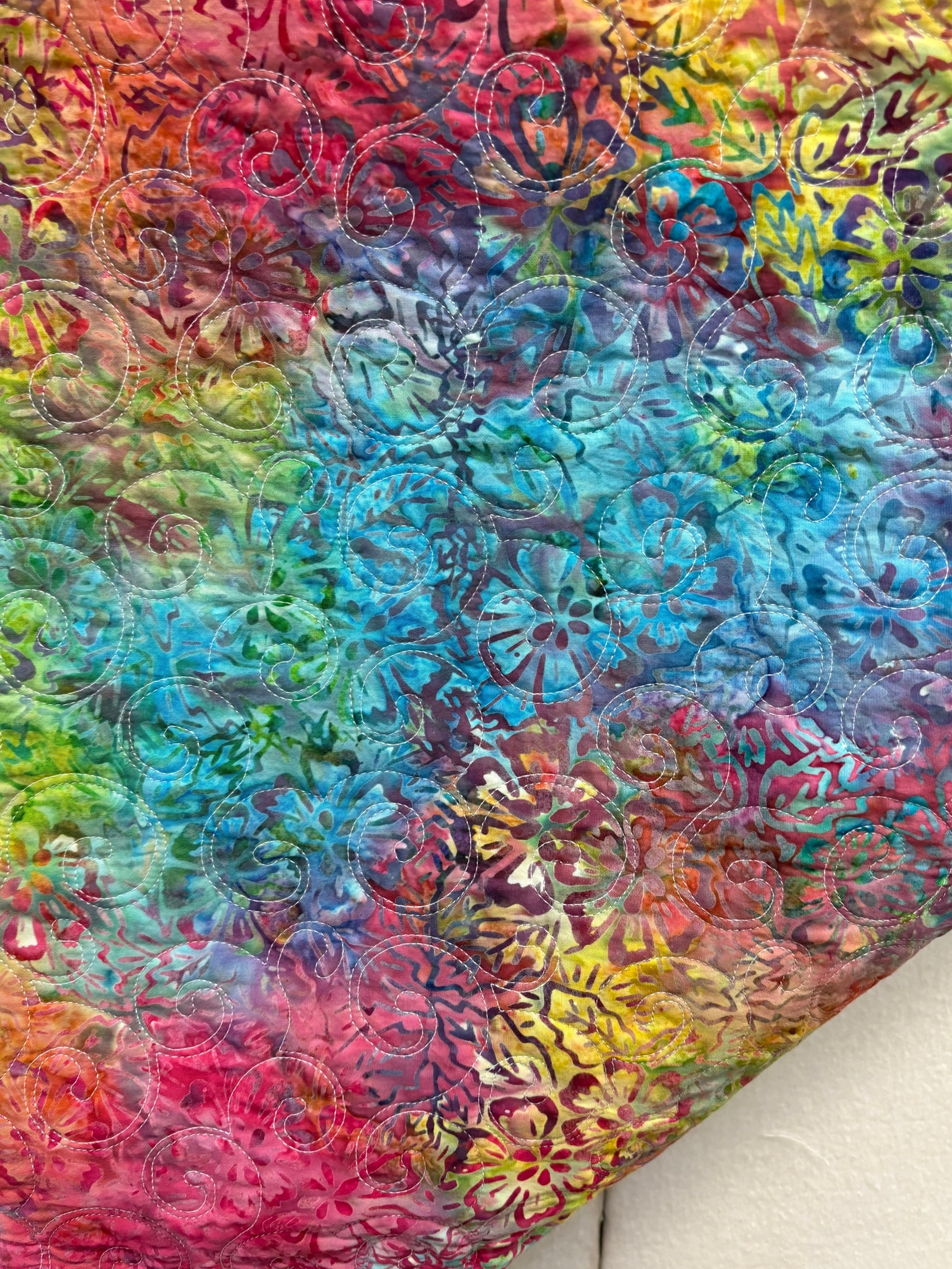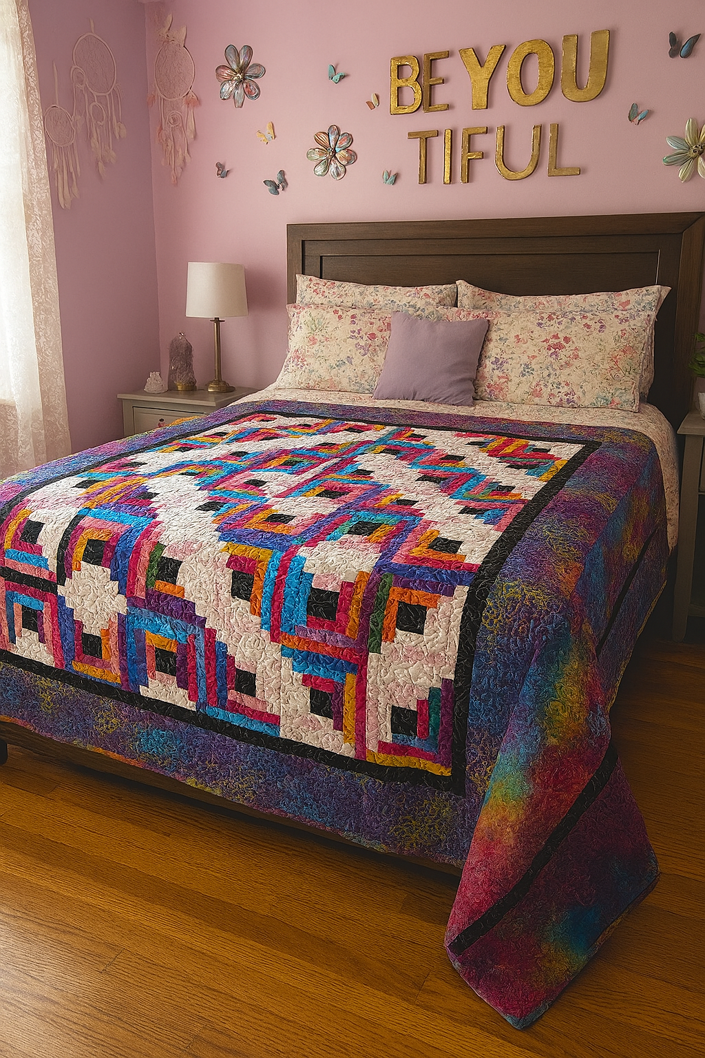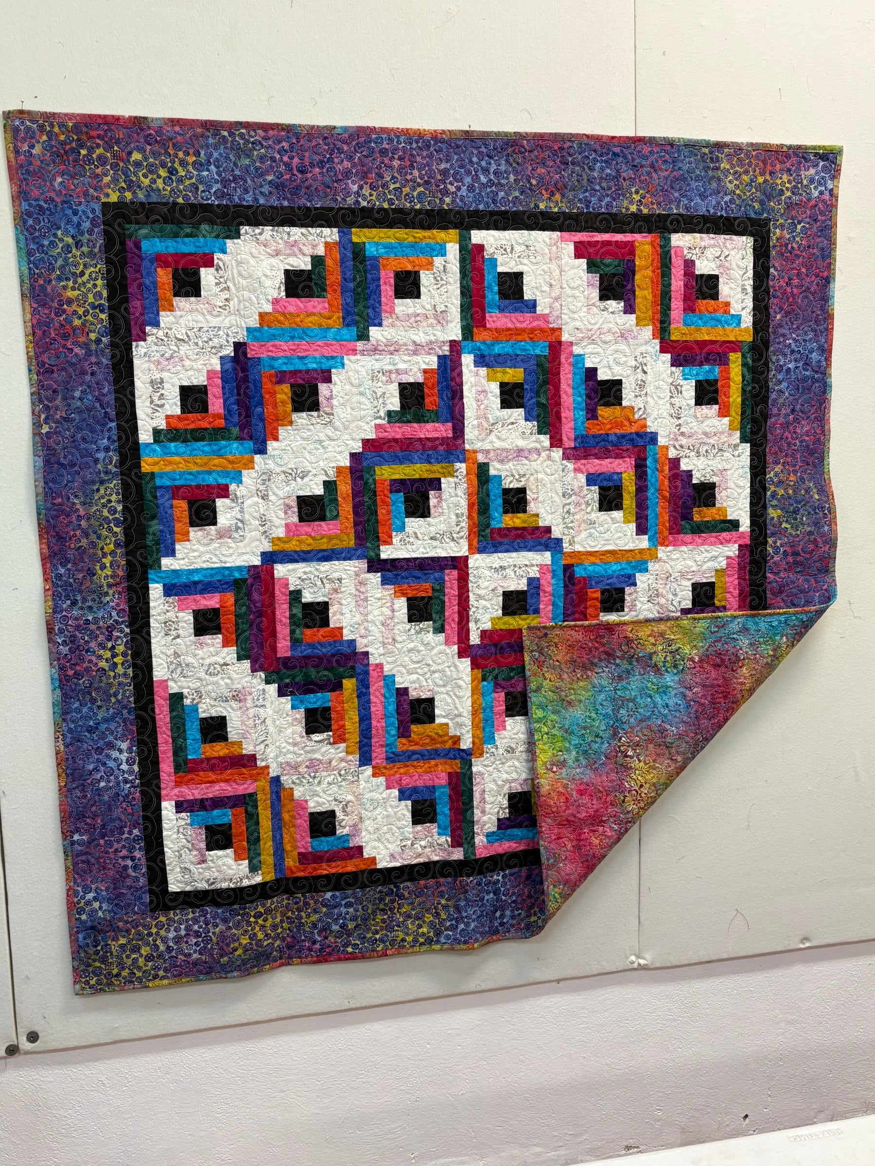 Transform your living space with the handcrafted Batik Log Cabin Quilt, a vibrant masterpiece measuring 60" x 61". Created by the talented Cindy Dotson and meticulously quilted by Six Mile Quilting, this quilt blends traditional craftsmanship with artistic flair. Each piece of batik fabric is carefully selected for its rich, colorful patterns, creating a stunning visual tapestry that adds warmth and character to any room. Ideal for cozying up on a chilly evening or as a striking decorative throw, this quilt offers both comfort and style. Embrace the beauty of handcrafted art and elevate your home decor with this unique quilt. Perfect for those who appreciate quality and creativity in their home furnishings.