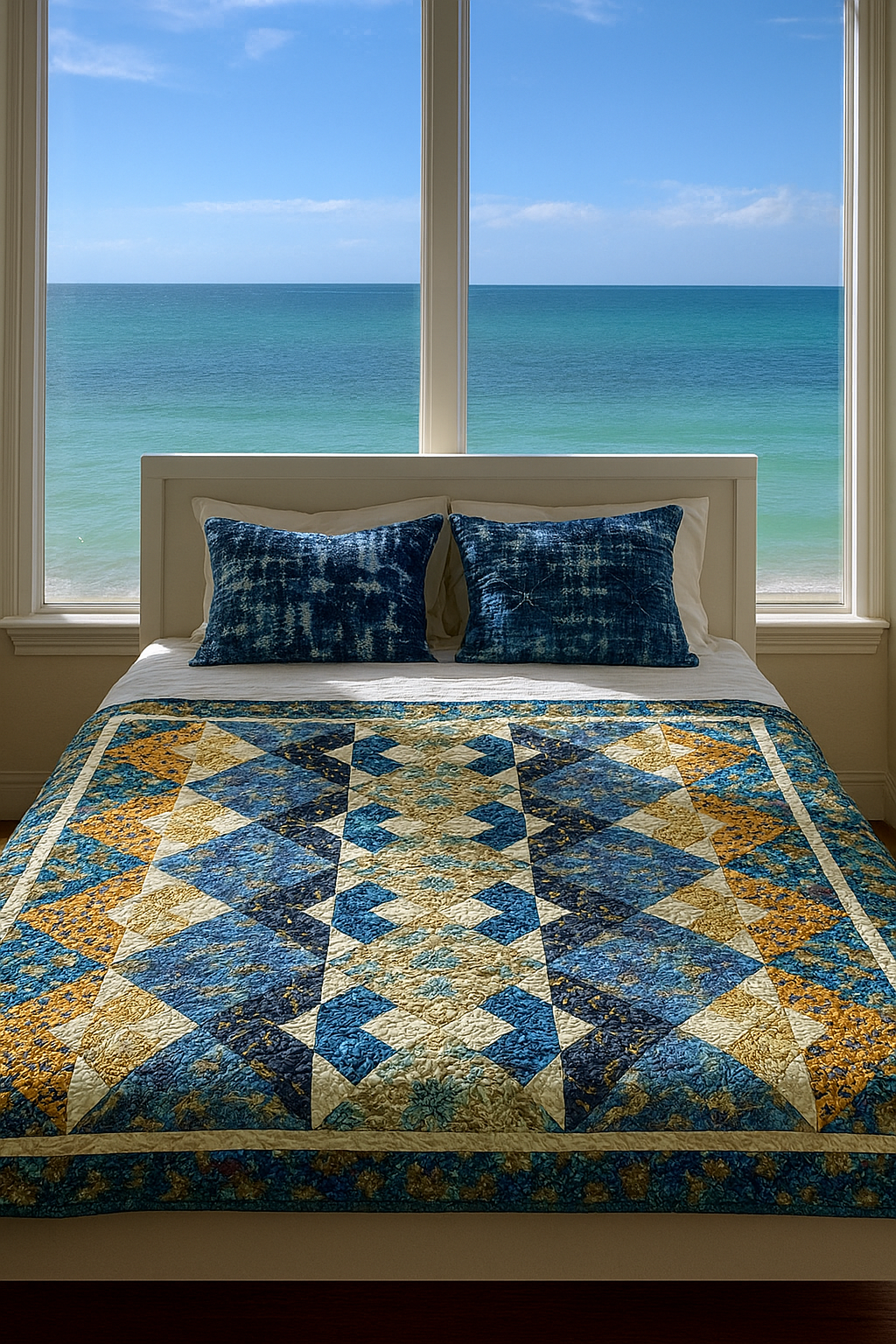 Transform your living space with the Blue Braid Completed Quilt by Six Mile Quilting. This exquisite quilt, crafted with precision and care, features a stunning braid pattern in soothing shades of blue that evoke a sense of calm and serenity. Machine-quilted to ensure durability and a flawless finish, this quilt is perfect for snuggling up on chilly nights or adding a touch of elegance to your bedroom decor. Measuring a generous size, it effortlessly drapes over any bed, providing both warmth and style. Embrace the artistry of handcrafted design with this unique piece that promises to be a cherished addition to your home.