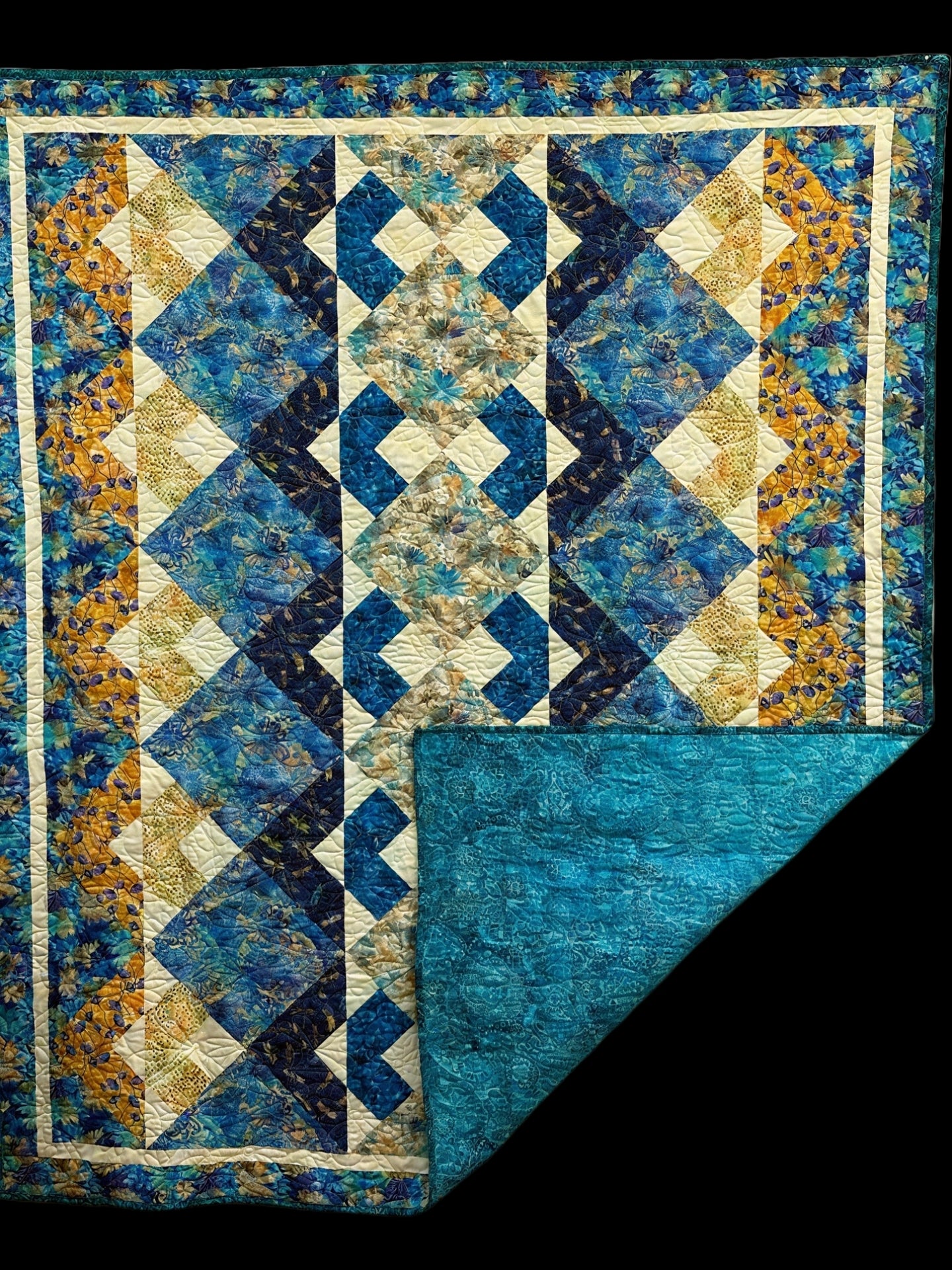 Blue Braid 53.5 X 63.5 inches Completed Quilt- Whole Panel Machine Quilted