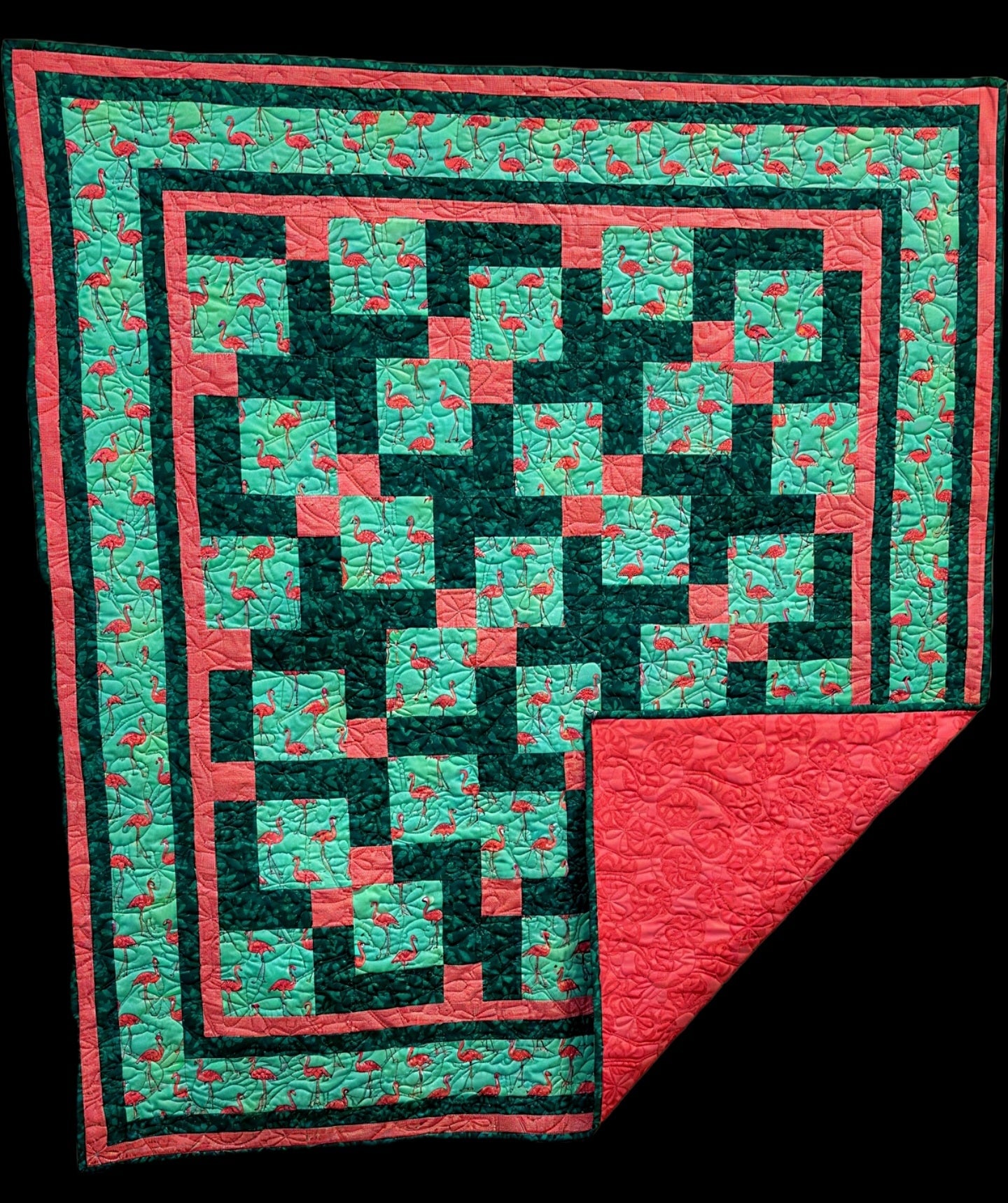 Flamingo Quilt- 45in X 50in- Pieced by Kelee Guillory Quilted by Six Mile Quilting