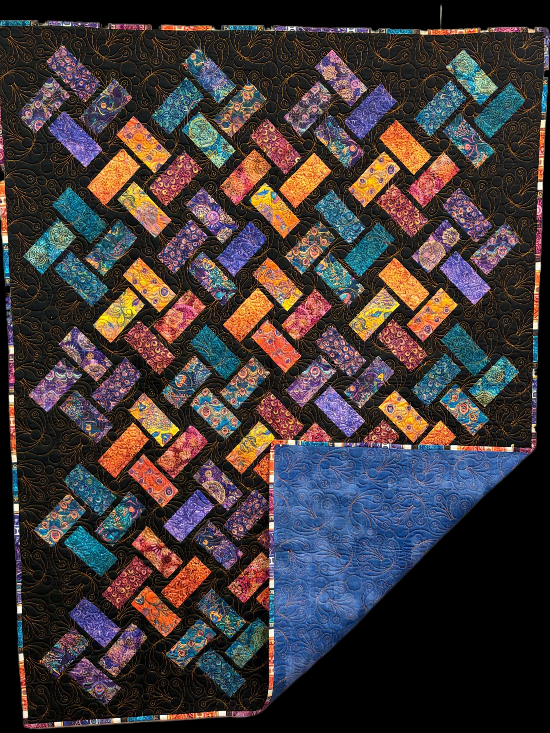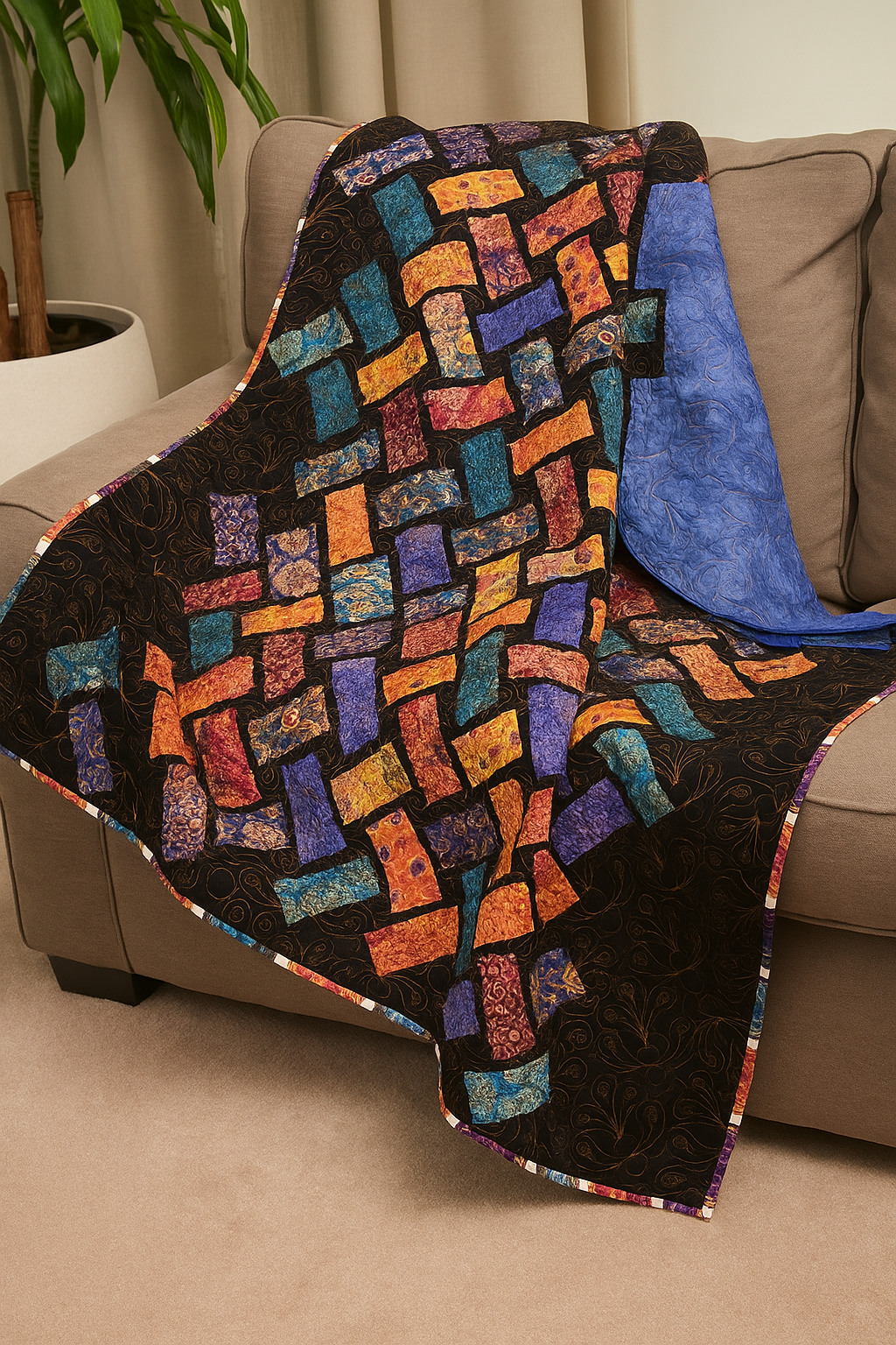 Transform your living space with the Modern Bright and Black Quilt, measuring 52x68 inches and expertly crafted by Six Mile Quilting. This stunning quilt combines vibrant colors with classic black for a striking visual impact, perfect for adding a pop of style to any room. Each quilt is machine quilted with precision, ensuring durability and a flawless finish. Whether draped over a sofa or layered on your bed, this quilt offers cozy comfort and handmade quality that stands out. Elevate your home decor with this unique piece that marries artful design with everyday functionality.
