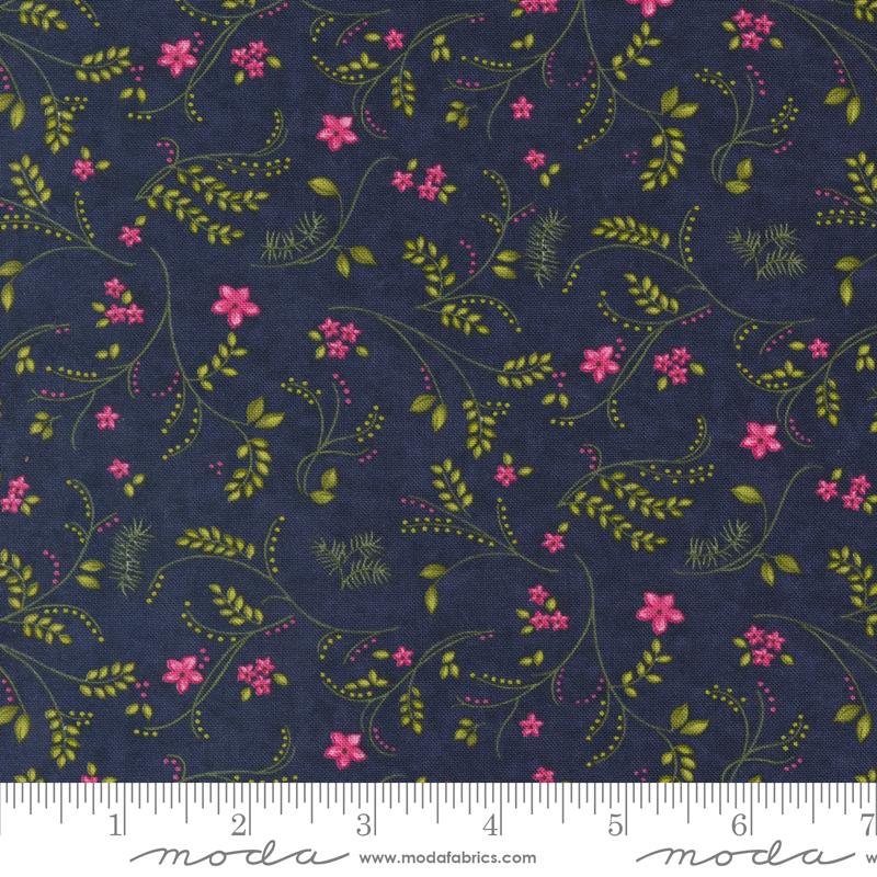Transform your creative projects with the In Bloom - Spring Imprint fabric by Moda. Crafted from premium cotton, this exquisite fabric features a vibrant floral design that brings a touch of nature's elegance to your quilting and crafting endeavors. The deep navy background is beautifully contrasted by delicate pink blossoms and lush green foliage, creating a striking visual appeal. Perfect for quilting, sewing, or any DIY project, this fabric adds a refreshing burst of springtime charm to your creations. Unleash your creativity with this high-quality fabric that promises durability and style, making it an essential addition to any crafter's collection.