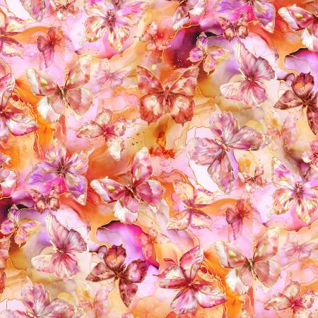 Bring your creative visions to life with the Flourish Sherbert fabric by Hoffman Fabrics. This exquisite fabric features a vibrant array of butterfly patterns that dance across a backdrop of warm sherbert hues, blending pinks, oranges, and purples. Crafted from high-quality cotton, it promises durability and softness, making it an ideal choice for quilts, crafts, and home decor projects. Whether you're crafting a cozy quilt or adding a splash of color to your living space, this fabric infuses your projects with a touch of nature's elegance. Embrace the beauty of transformation and let your creativity take flight with Flourish Sherbert.