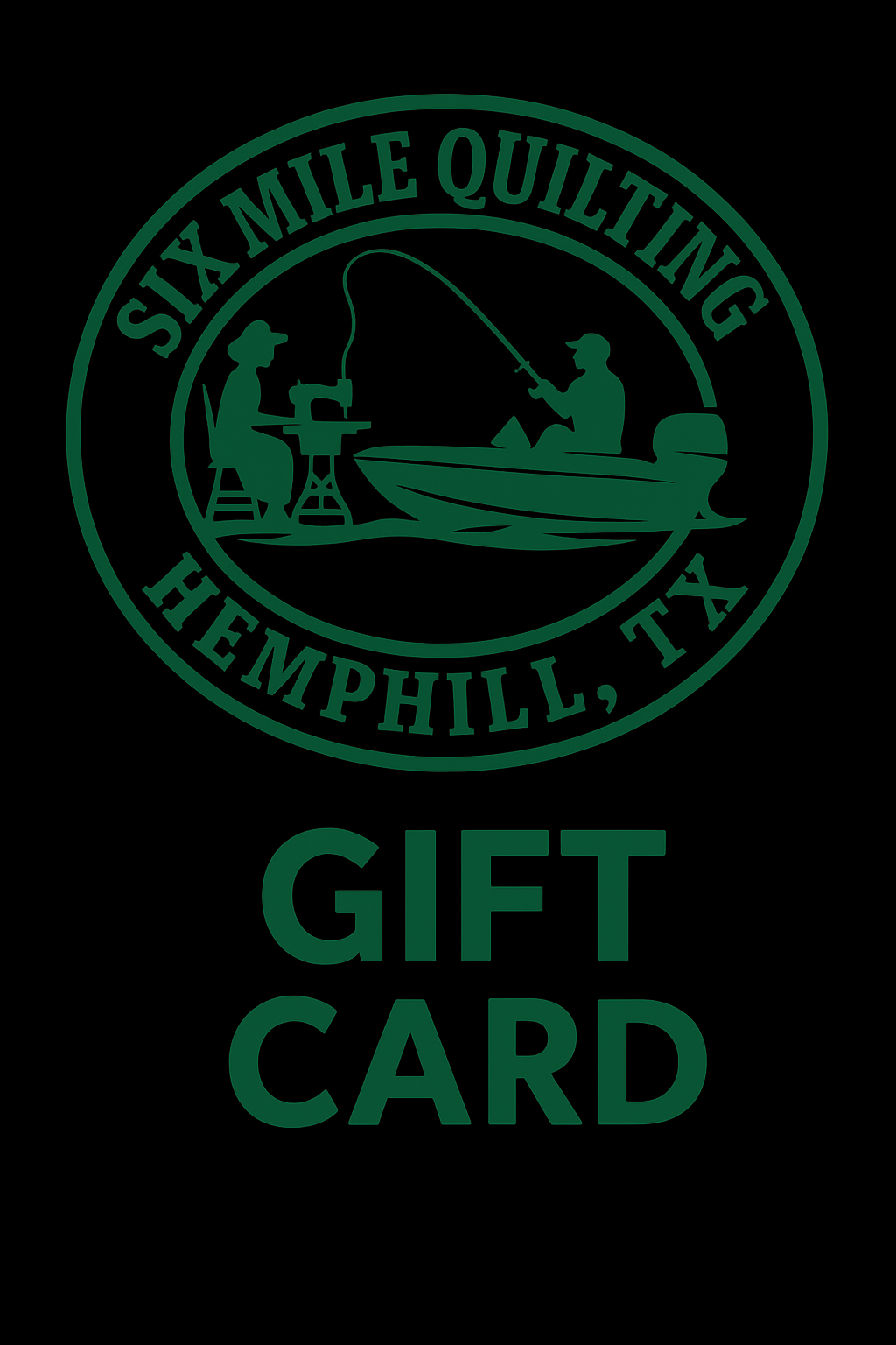 Whether you're shopping for a seasoned quilter or someone just getting started, a Six Mile Quilting Gift Card is the perfect way to inspire creativity. Redeemable in-store or online, it can be used for premium fabrics, longarm services, quilting notions, and more. Let your loved ones choose their own favorites and stitch something special—because handmade starts here.