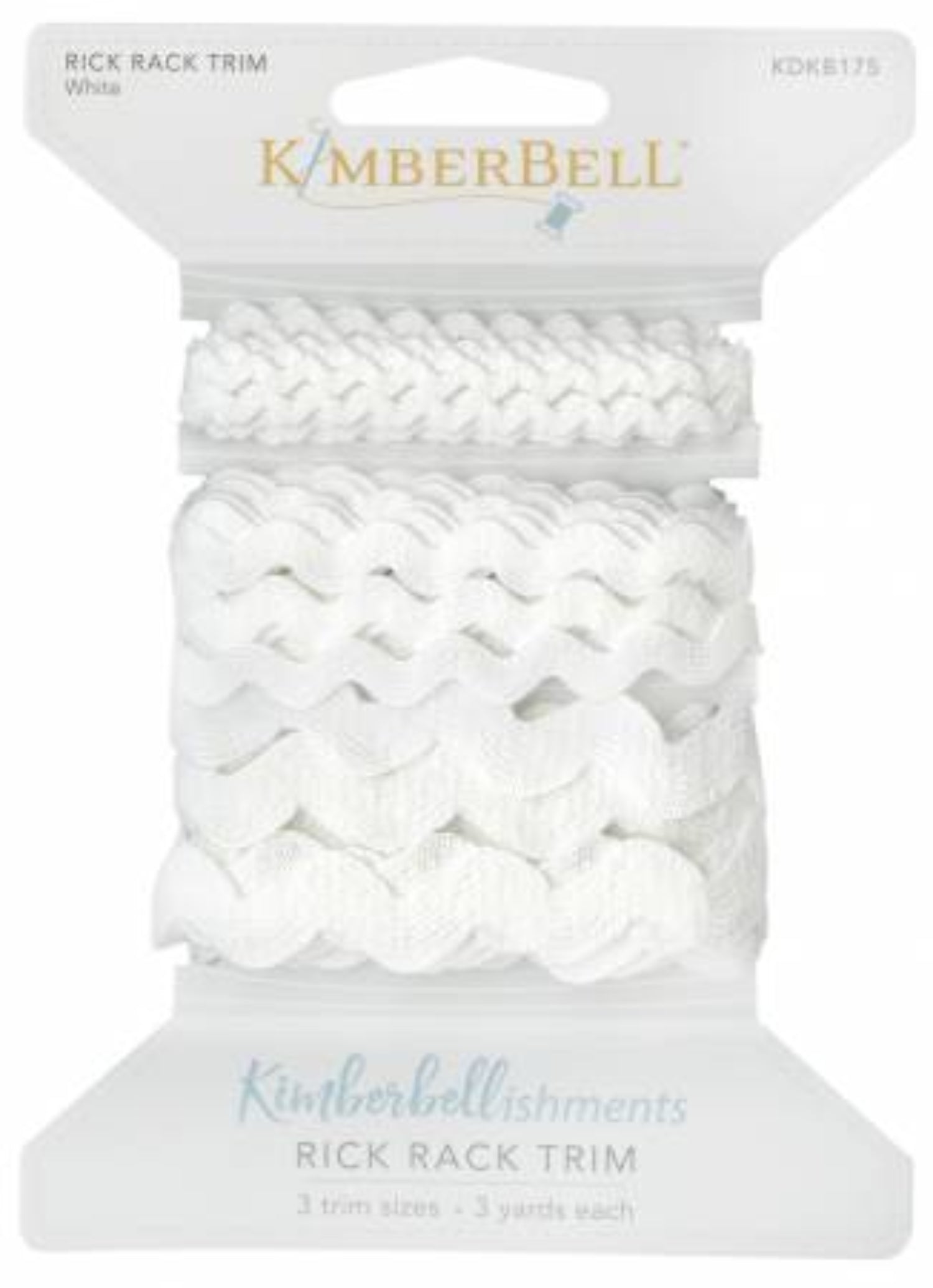 Elevate your sewing projects with Kimberbellishments Rick Rack White by KimberBell Designs. This high-quality trim comes in three versatile sizes, each offering 3 yards of creative potential. Perfect for adding a charming touch to quilts, crafts, and garments, this white rick rack trim is your go-to for delightful embellishments. Its crisp, braided design adds texture and dimension, making your creations stand out with a professional finish. Whether you're crafting a cozy quilt or a playful dress, this trim is the perfect accent to express your creativity and style. Transform your projects with Kimberbellishments Rick Rack White and make every stitch count.