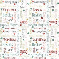 Celebrate the joy of companionship with the "Life Is Better With Friends" fabric by QT Fabrics. This delightful textile features a vibrant array of words like "Besties," "Soul Sisters," and "Chums," all in a playful, colorful script that brings warmth and cheer to any project. Ideal for quilting and crafts, this high-quality fabric transforms your creative ideas into heartfelt gifts or cherished keepsakes. The white background accentuates the lively text, making it a versatile choice for any color scheme. Whether you're crafting a quilt, a tote bag, or decorative pillows, this fabric adds a personal touch that speaks to the heart. Embrace the spirit of friendship and creativity with this charming fabric.