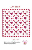 Transform your space with the Pastry Shop Quilts Love Punch Quilt Pattern, a delightful design that captures the essence of warmth and charm. Crafted using Riley Blake's vibrant Love Punch Batik Collection, this quilt pattern invites you to create a 60" x 60" masterpiece filled with heart motifs and intricate geometric shapes in rich reds and pinks. Perfect for cozying up your living room or adding a splash of color to your bedroom, this pattern is ideal for both novice and experienced quilters. Let your creativity flow and stitch together a quilt that speaks the language of love and comfort.