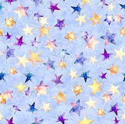 Unleash your imagination with QT Fabrics' "Oh The Places - Blue Stars" fabric, a celestial wonderland for your quilting and crafting projects. This vibrant fabric features a mesmerizing pattern of watercolor stars in shades of purple, gold, and blue, set against a serene sky-blue backdrop. Perfect for adding a touch of cosmic charm to quilts, home décor, or any creative endeavor, this fabric invites you to dream big and craft boldly. Made with premium quality, it ensures durability and ease of use, making it ideal for both beginners and seasoned crafters. Transform your projects into stellar masterpieces with this enchanting fabric.