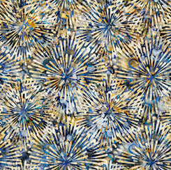 Elephants rendered in exotic design and rich color are center stage and are complimented by textural and geometric designs that will add interest and dimension to quilt, apparel and home décor projects. These QTique fabrics integrate the technology of digital printing with the aesthetic and traditional weave of batiks. Printed on cotton 130/70 woven fabric with the QT soft hand finish for extraordinary drape. ©Dan Morris