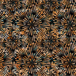 Elephants rendered in exotic design and rich color are center stage and are complimented by textural and geometric designs that will add interest and dimension to quilt, apparel and home décor projects. These QTique fabrics integrate the technology of digital printing with the aesthetic and traditional weave of batiks. Printed on cotton 130/70 woven fabric with the QT soft hand finish for extraordinary drape. ©Dan Morris