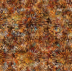 Elephants rendered in exotic design and rich color are center stage and are complimented by textural and geometric designs that will add interest and dimension to quilt, apparel and home décor projects. These QTique fabrics integrate the technology of digital printing with the aesthetic and traditional weave of batiks. Printed on cotton 130/70 woven fabric with the QT soft hand finish for extraordinary drape. ©Dan Morris