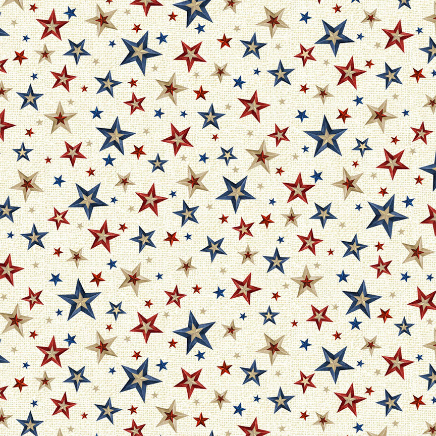 Elevate your crafting projects with the Love & Glory Burlap Star Toss fabric by P&B Textiles. Crafted from high-quality cotton, this fabric features a delightful array of vibrant red, blue, and beige stars scattered across a rustic beige backdrop, perfect for adding a patriotic flair to your quilts and crafts. Its durable and soft texture ensures your creations are both charming and long-lasting. Whether you're designing a cozy quilt or a festive home décor piece, this fabric brings a touch of rustic elegance and Americana spirit to every stitch. Let your creativity shine with this versatile and eye-catching fabric.