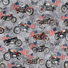 Stars, Stripes, & Steel - Grey Motorcycles & American Flags- QT Fabrics