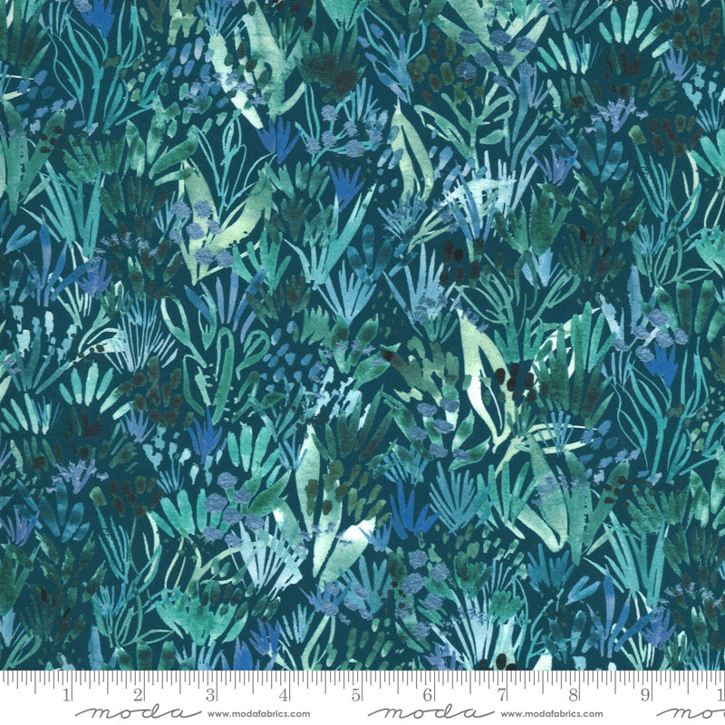 Unleash your creativity with Moda's Sunshine Soul Midnight fabric, a captivating choice for quilting enthusiasts and home decor aficionados. This high-quality cotton fabric boasts a lush, vibrant design that brings a touch of nature's elegance into your projects. The deep midnight blue backdrop is adorned with intricate foliage patterns in shades of green and blue, creating a stunning visual depth that is sure to captivate. Perfect for crafting quilts, cushions, or curtains, this fabric ensures durability and a flawless finish. Transform your space with the timeless beauty and superior quality of Moda Fabrics. Let your imagination run wild with this exquisite textile masterpiece.