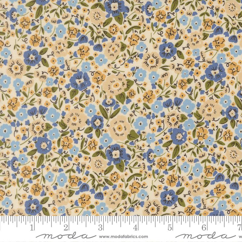 Transform your quilting projects with The Henhouse - Cloud 48435 11 fabric by Moda. Designed by Sandy Gervais, this fabric features a charming natural floral pattern that brings a touch of seasonal elegance to your creations. With a width of 44"-45", it offers ample material for versatile use, whether you're crafting cozy quilts or stylish home decor. The soft, earthy tones of blue, yellow, and green flowers on a neutral background create a harmonious palette that complements any project. Elevate your quilting with this high-quality fabric that promises durability and timeless beauty. Perfect for those who cherish creativity and craftsmanship.