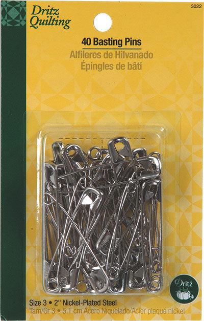 Elevate your quilting projects with Dritz Basting Pins, designed for the discerning crafter who values efficiency and precision. These size 3, 2-inch nickel-plated safety pins are your go-to solution for securing quilt layers with ease and confidence. The durable construction ensures that your fabric stays in place, allowing you to focus on the creative aspects of quilting. Perfect for quick basting, these pins are a must-have in any quilter's toolkit. With a sleek, shiny finish, they not only perform flawlessly but also add a touch of elegance to your quilting process. Simplify your quilting journey with Dritz Basting Pins and experience the joy of hassle-free crafting.