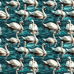 Transform your creative projects with the SWAN SONG fabric by QT FABRICS, a must-have for quilting and crafting enthusiasts. This exquisite fabric features a mesmerizing pattern of elegant swans gliding gracefully across a serene, teal background, adding a touch of sophistication and tranquility to any creation. Perfect for crafting unique quilts, home décor, or fashion accessories, this fabric invites you to infuse your projects with a sense of elegance and charm. Made with high-quality materials, it ensures durability and ease of use, making your crafting experience as smooth as the swans it depicts. Dive into your next project with this stunning fabric and let your creativity soar.