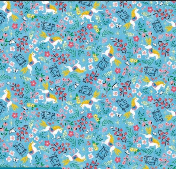 Transform your creative projects with the Unicorn Dance Play fabric by Michael Miller. This enchanting fabric features a vibrant blue backdrop adorned with whimsical unicorns and delicate florals, perfect for bringing a touch of magic to your quilts, garments, or crafts. Measuring 44"/45" wide, it offers ample material for your imaginative endeavors. The fabric is machine washable, ensuring easy care and maintenance, so your creations stay as enchanting as ever. Whether you're crafting a cozy quilt or a charming dress, let your creativity dance and sparkle with this delightful fabric.