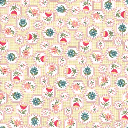 Unleash your creativity with Maywood Studio's Vintage Flora - Honeycomb Floral Pink fabric, a delightful addition to any quilting or crafting project. This fabric features a charming honeycomb pattern adorned with delicate pink and blue florals, set against a soft yellow backdrop. The intricate design adds a vintage touch, perfect for creating timeless pieces that exude elegance and warmth. Made with high-quality materials, this fabric ensures durability and ease of sewing, making it ideal for both beginners and seasoned crafters. Transform your projects with this enchanting fabric and let your imagination bloom. Whether you're crafting a cozy quilt or a stylish home accessory, the Vintage Flora fabric is your go-to choice for adding a splash of floral sophistication.