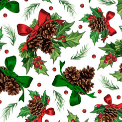 Winter Greetings - White - Holly - Pine - Holiday - Qt Fabrics - 28339-Z